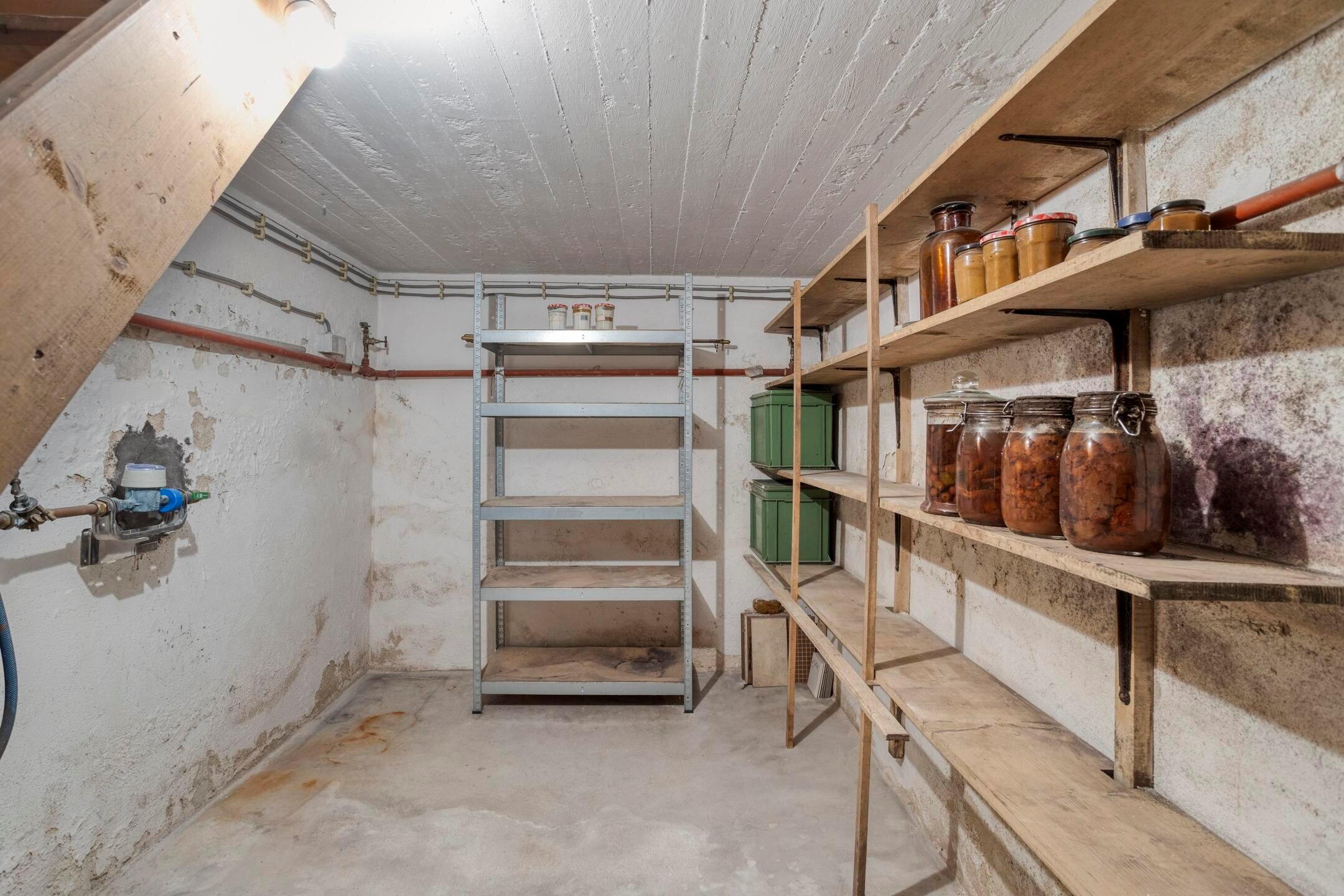 De kelder biedt praktische bergruimte en is ideaal voor voorraad of opslag.